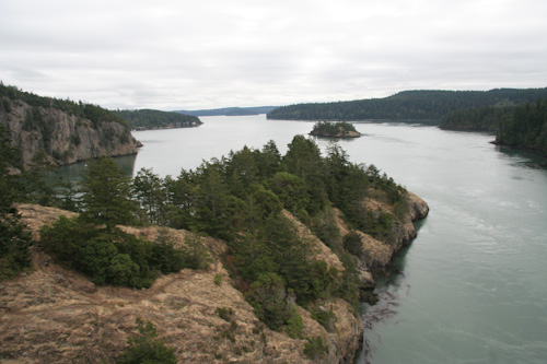 This fast-flowing channel runs between Fidalgo and Whidbey Islands.