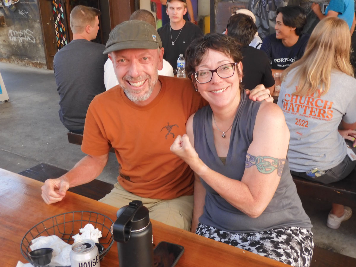 Even with a stop in Salem for a curbside pickup of some emergency REI supplies, we arrived in Portland in enough time to check into our motel before dinner. The reverberations of loud electric guitars at a concert across the street shook the room. We hoped they would stop before 02:00.