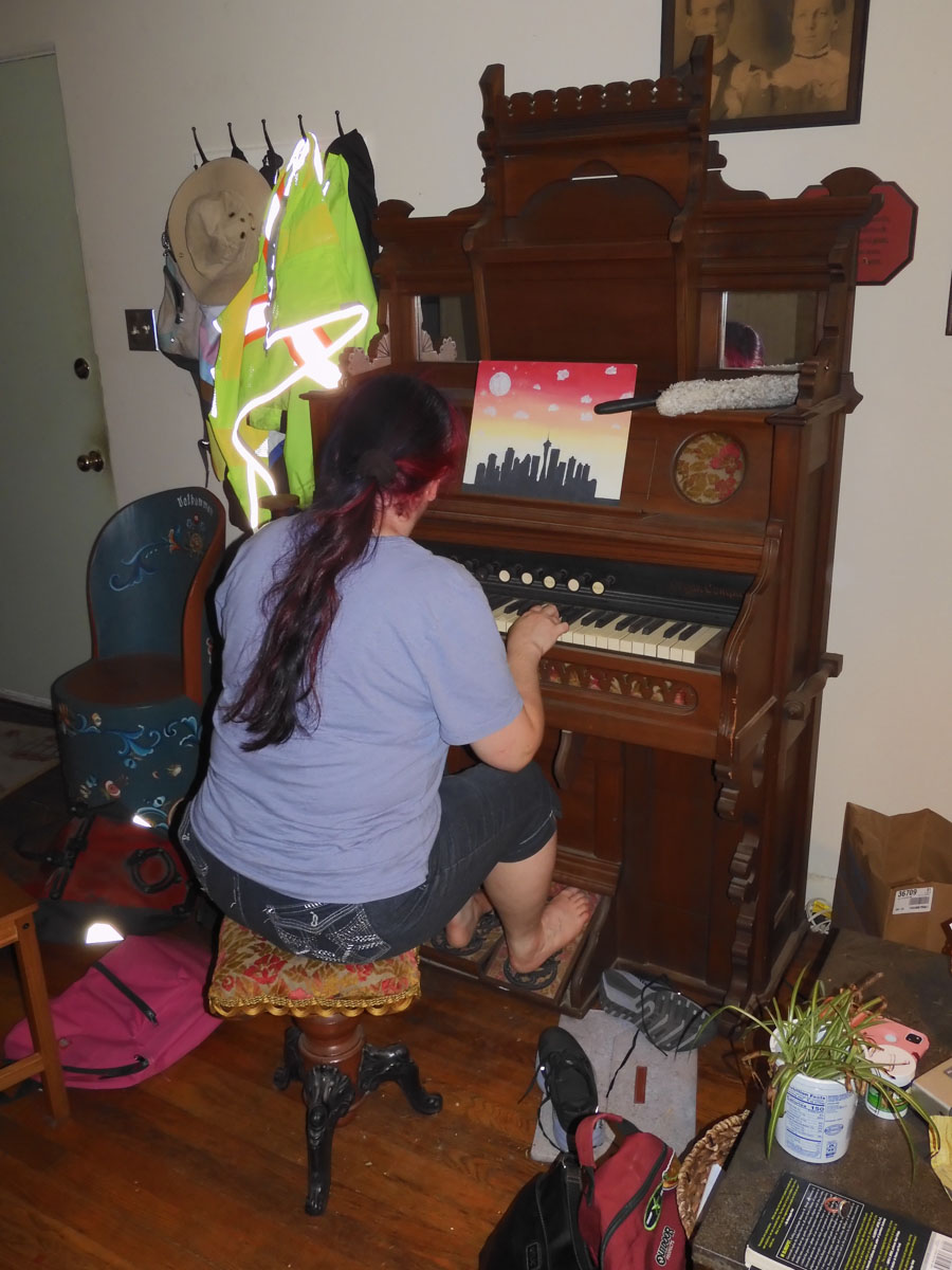 We forgot to take a group picture (AGAIN!), but Eric took a picture of our overnight host, Maria, playing her great-great grandmother's bellows organ.