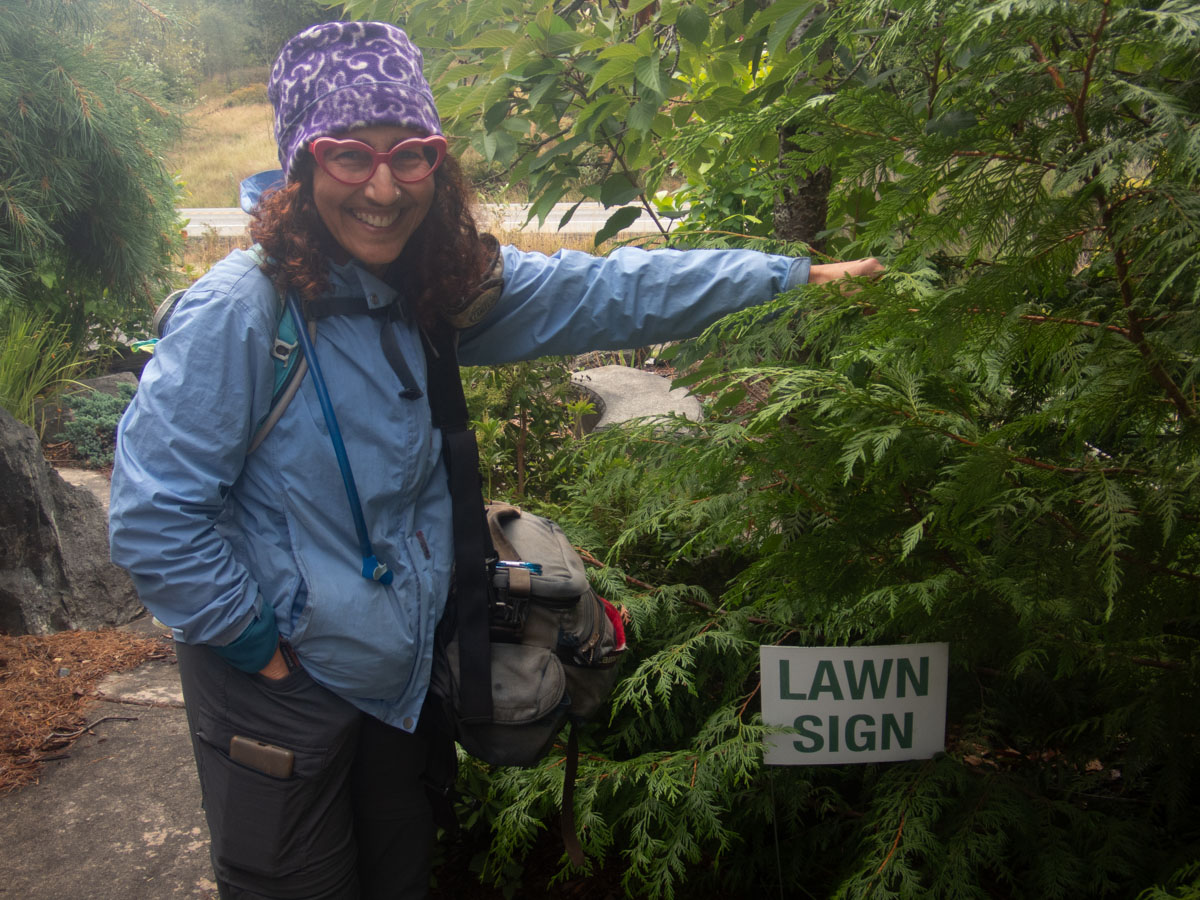 Eric took my picture with a lawn sign.