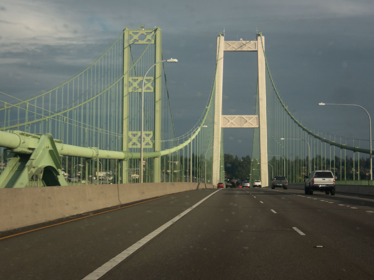 The other road, even though it was a state route and not a US route, was a much less pretty, freeway-type road. At least Eric got to take a picture as we drove over the infamous Tacoma Narrows.