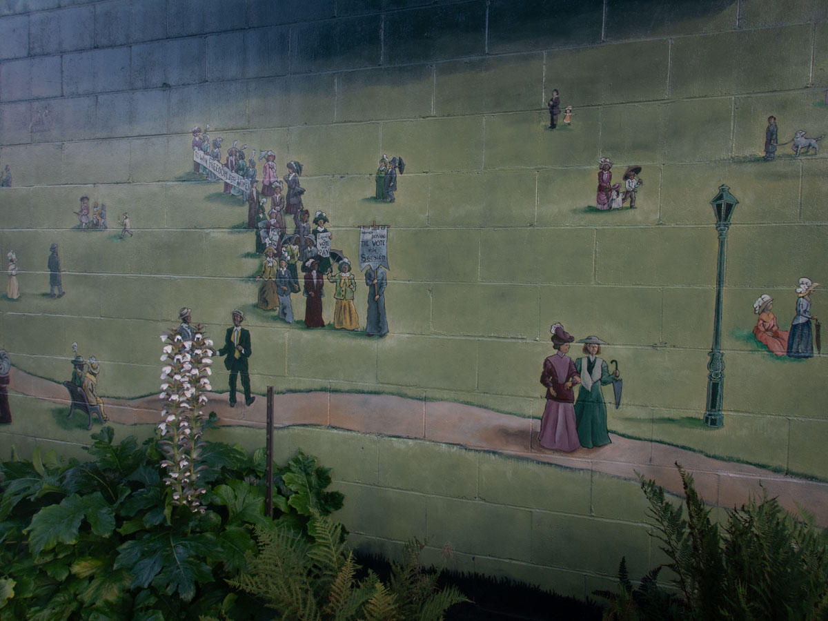 It was after 19:00 by the time we arrived in Olympia, so, after picking up a Target order, we had Middle Eastern food from a truck stand near this beautiful mural. Photo by Eric.