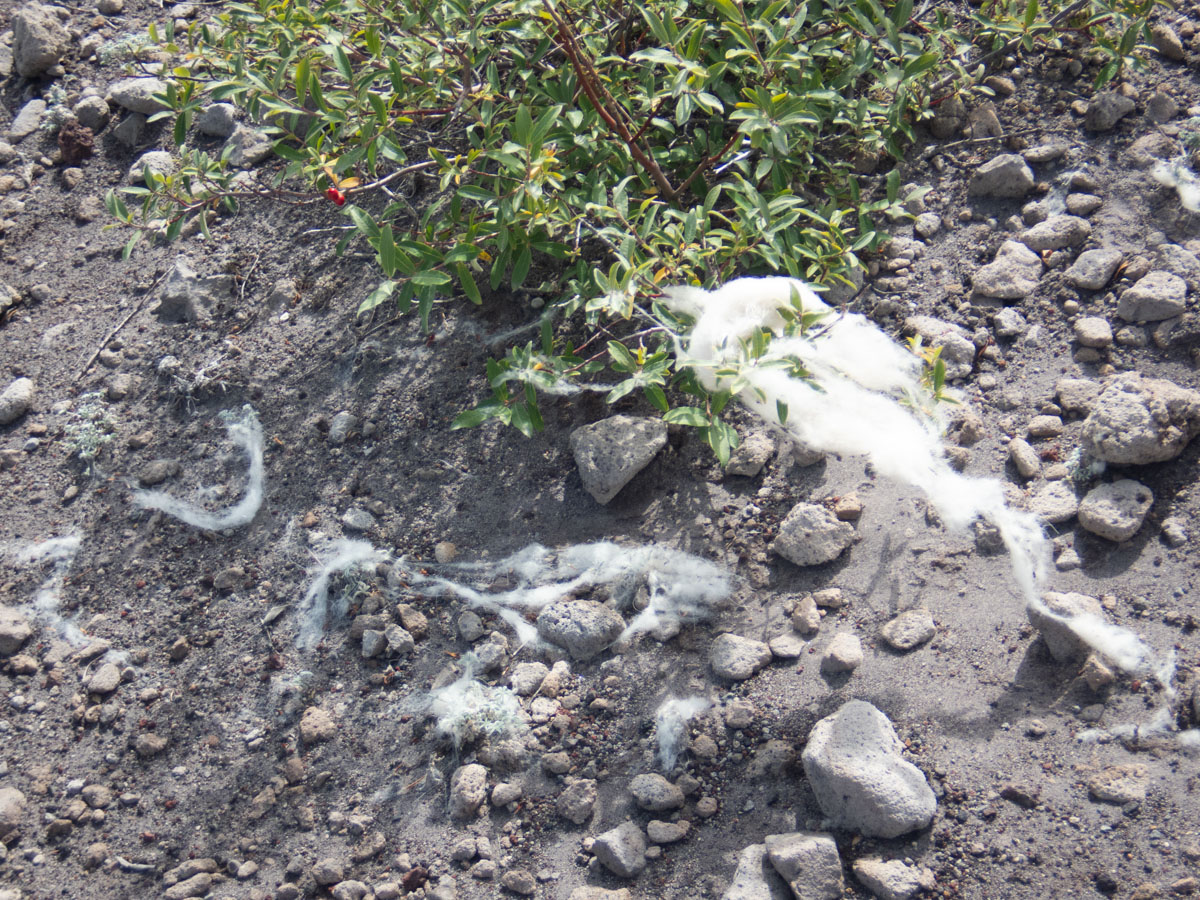 Eric photographed some goat hair that had been pulled off by the few plants on the plain.