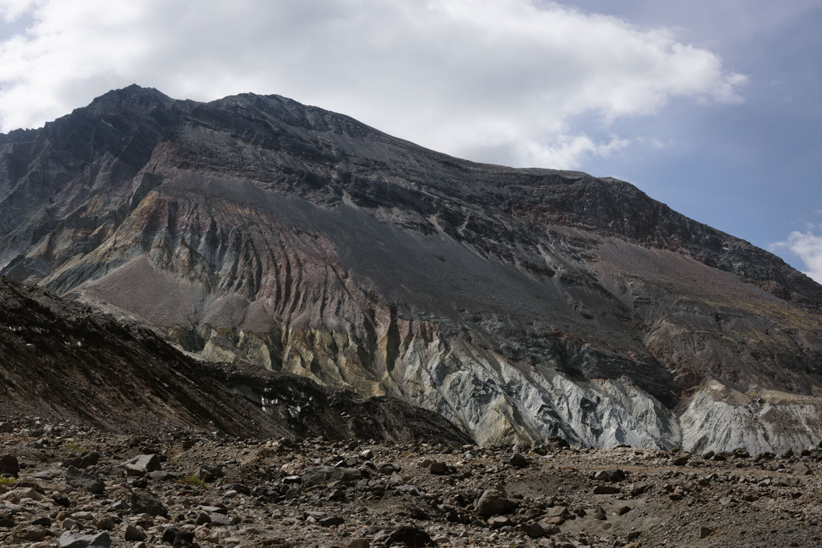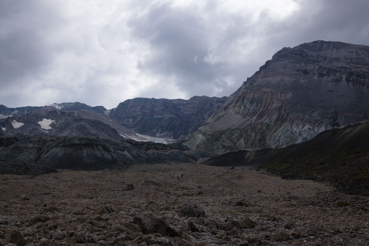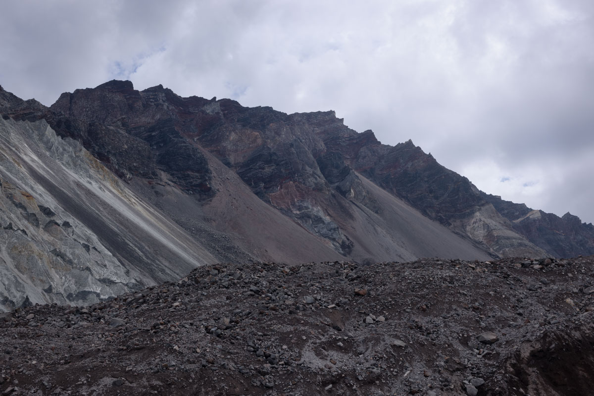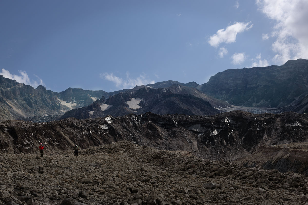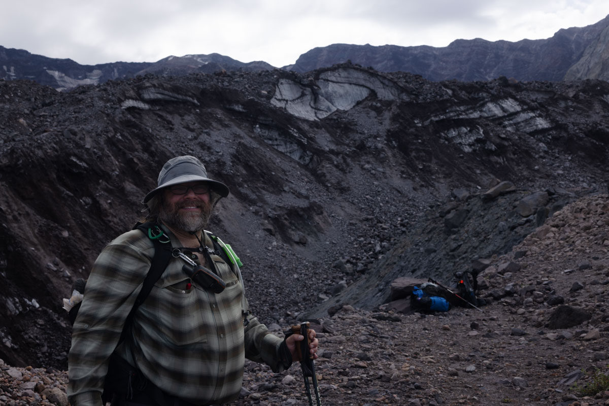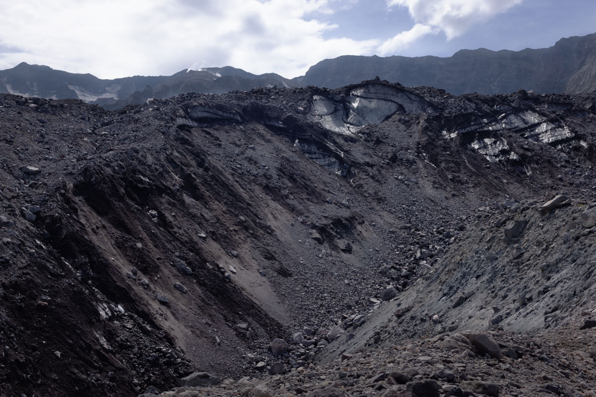 Looking back up, Willie explained that two parts of the same glacier parted and came together again after they went around the dome rising in the middle of the crater.