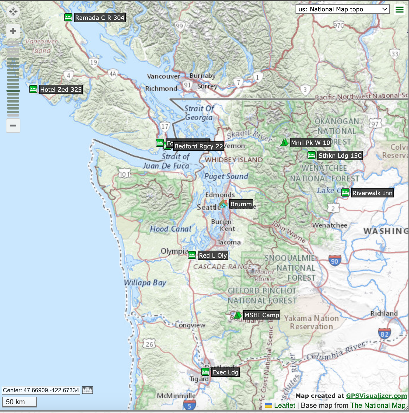 Map of our Pacific Northwest explorations.