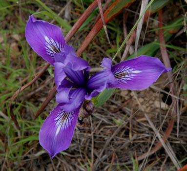 Saturday we started out from the Palomarin trailhead near the south end of the Pt. Reyes peninsula, and hiked out 4.1 miles along the Coast Trail down to Alamere Falls. We hiked a total of 8.2 miles in about 5.5 hours, including lunch and photography, a very good pace for us. The trail was not particularly steep; the elevation gain was about 500 feet in each direction. Tom Stienstra's California Hiking rated this trail a 2/5 for difficulty and a 10/10 for scenery. A lot of scenic bang for the effort expended, in other words.