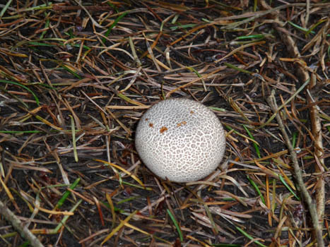 We saw a distinctive mushroom, probably a puffball, which is poisonous.