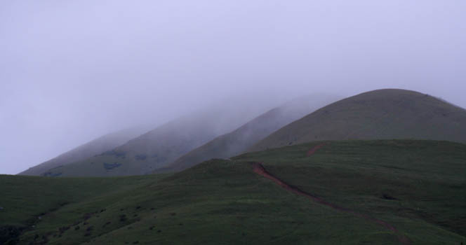 While it wasn't precisely raining, there was an enormous amount of moisture in the air, rendering the area chilly and clammy. We walked the interpretive earthquake trail and found an earth geocache. The Pt. Reyes peninsula runs directly over the San Andreas fault, and you can see a place where a fence was split 12 feet apart during the 1906 earthquake.
