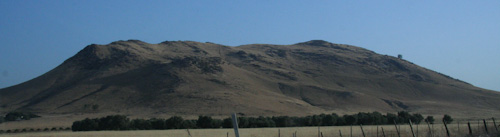 We drove through the Central Valley, the great basin in the low part of central California between the Coast Range and the Sierra Nevada. It’s remarkable how suddenly the mountains rise up from the valley. Two prominent foothills suddenly rose out of the flat land before us. I was able to identify them using Roadside Geology of Northern and Central California.