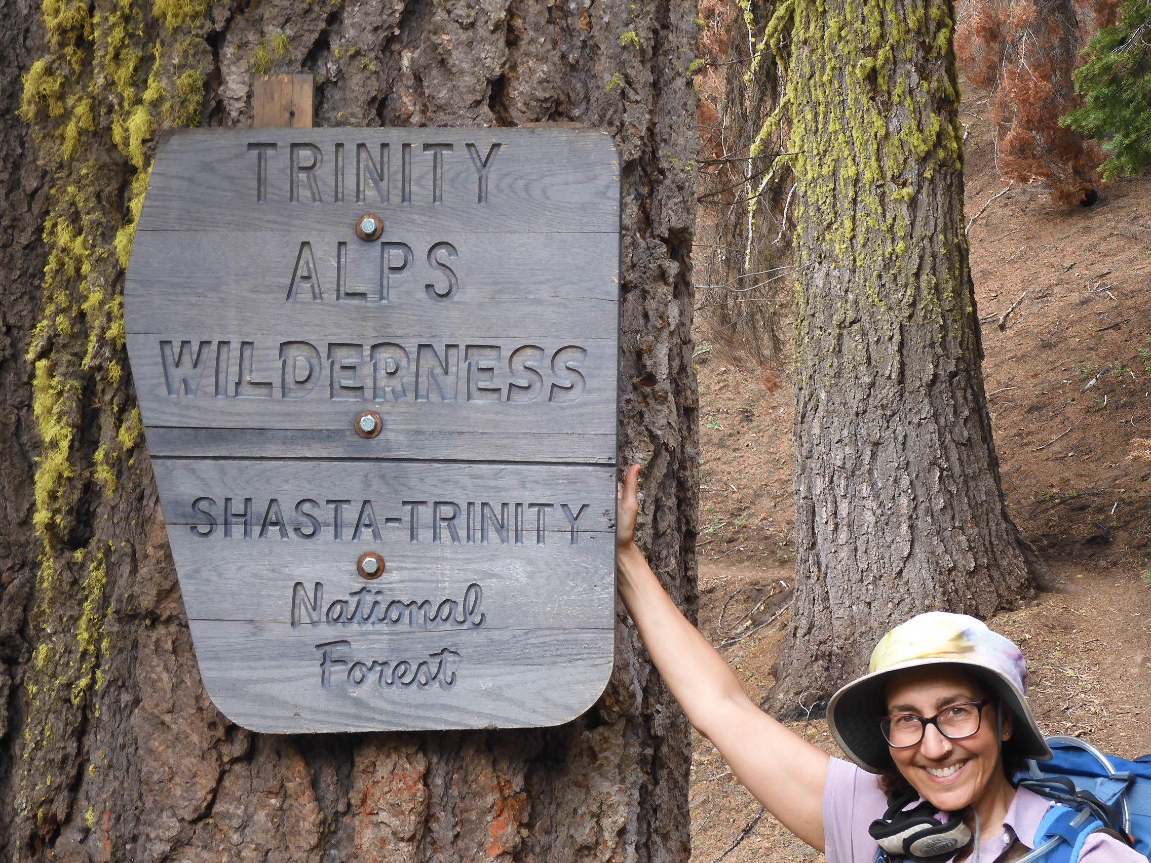 We walked a short way along a fire road before the trail narrowed at the wilderness boundary, where Eric took my picture with the sign.