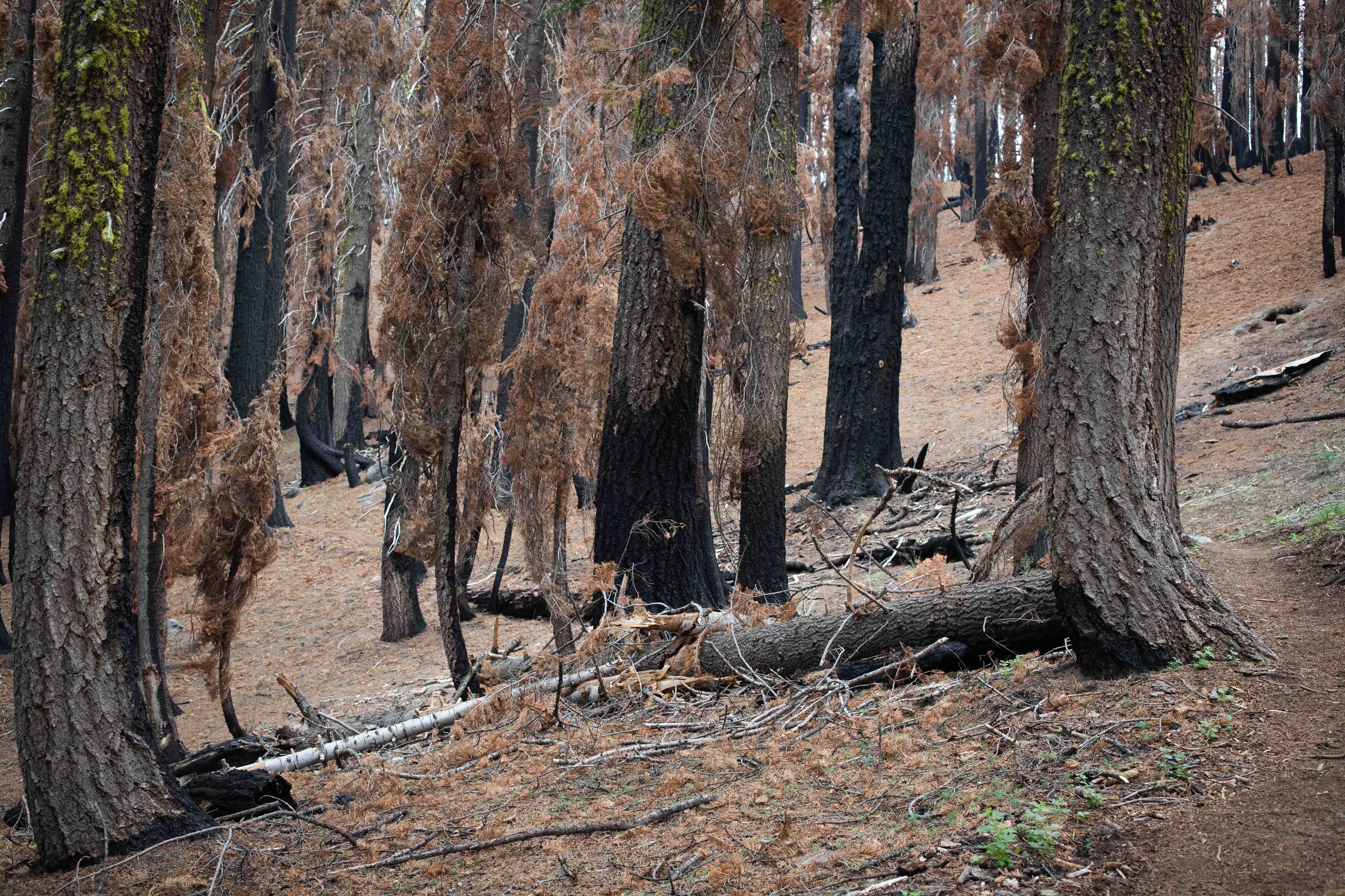 Sometimes you could see the path the fire had taken though the forest.