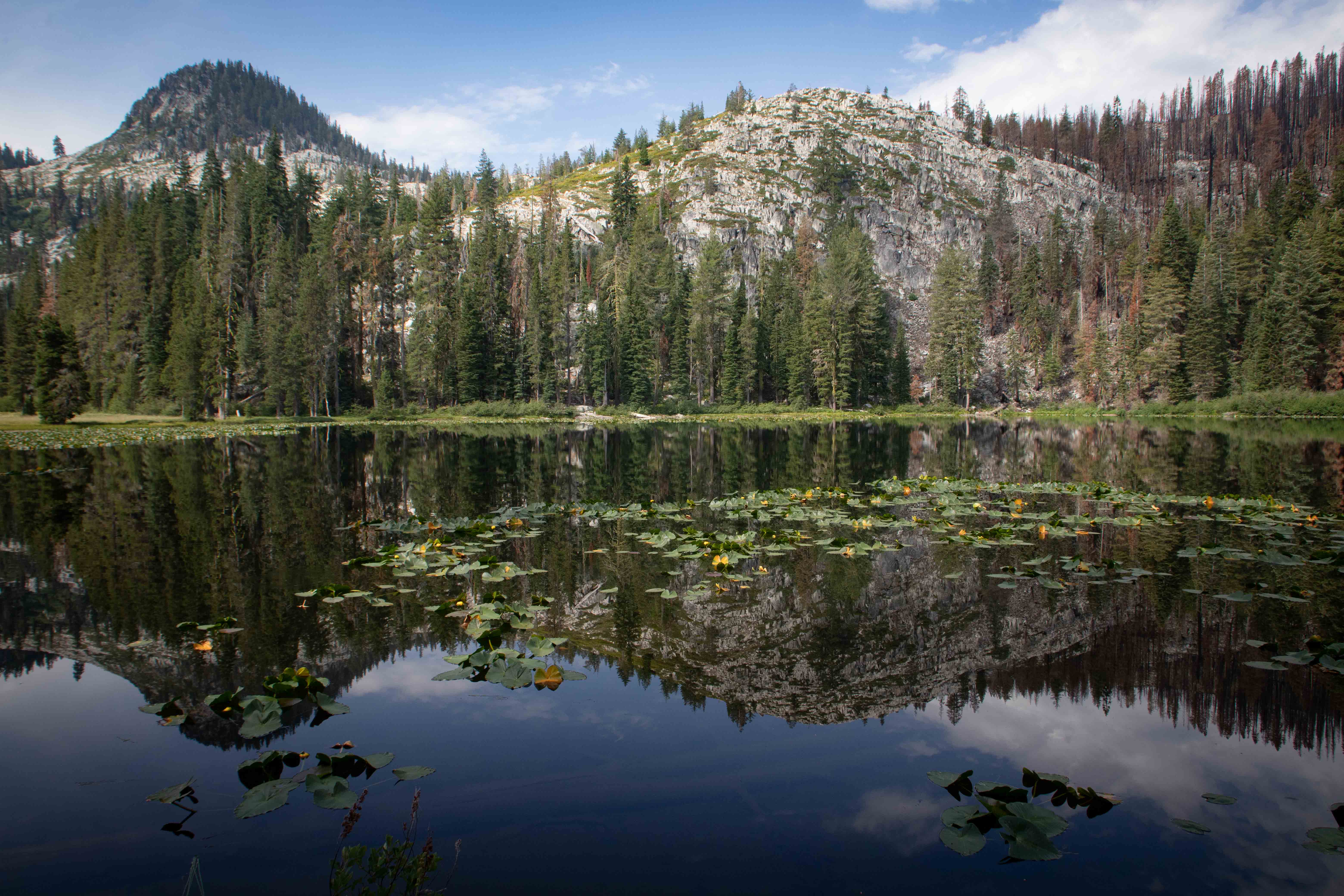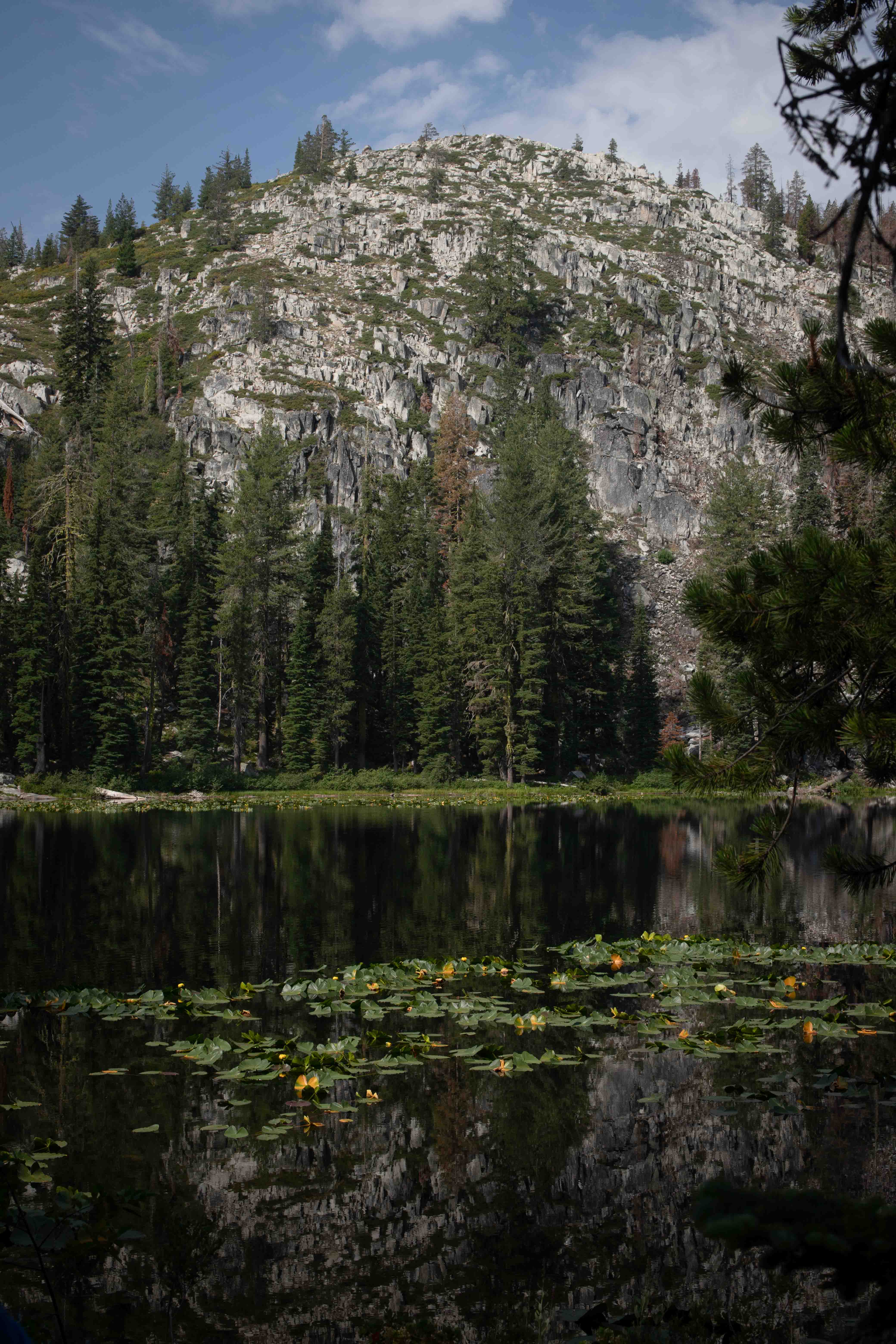 Granite rose dramatically above the lily pads.
