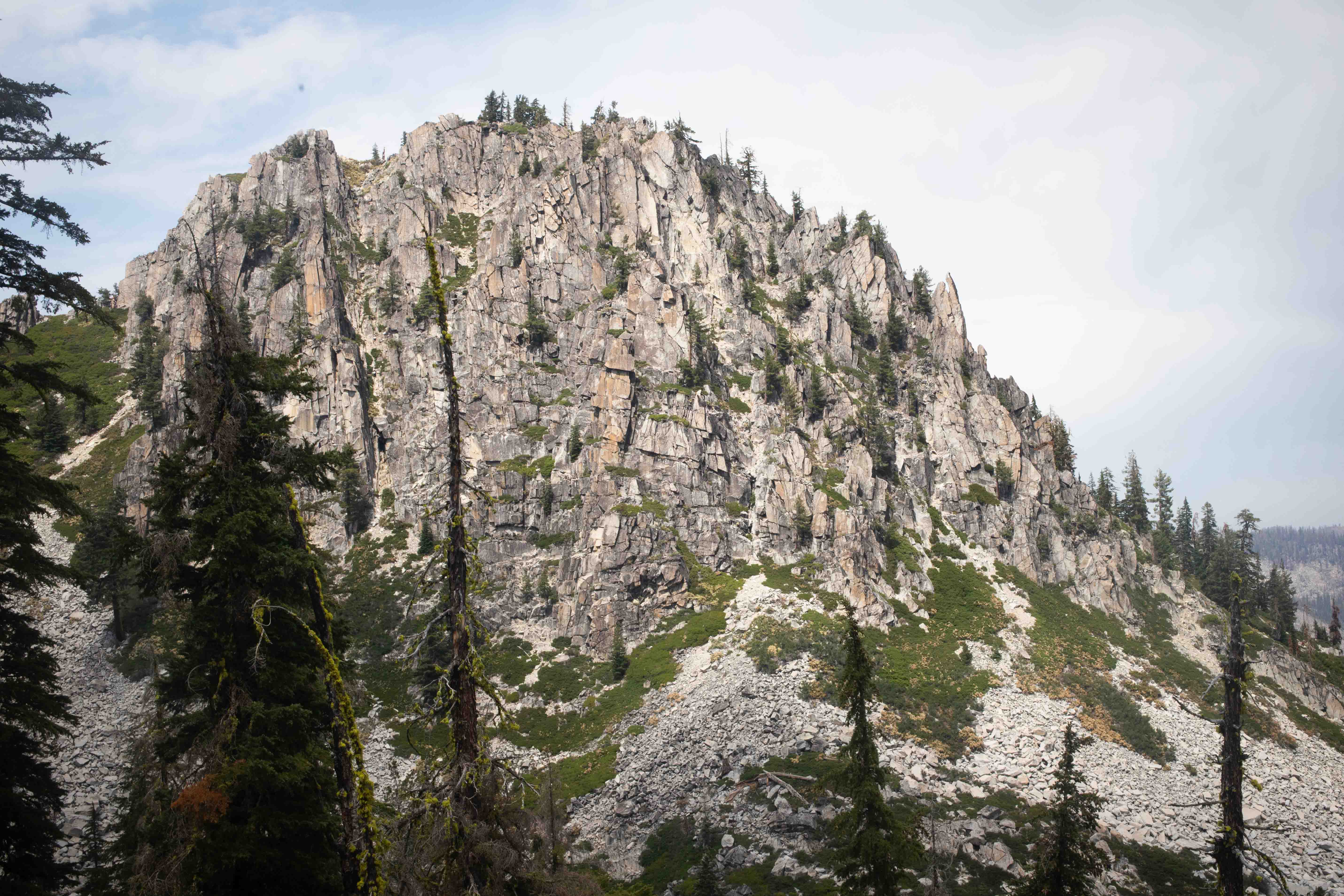 A glacier-carved peak, prosaically named "Peak 7435" by the Forest Service, rose in the distance. summitpost.org calls it Tapie Peak.