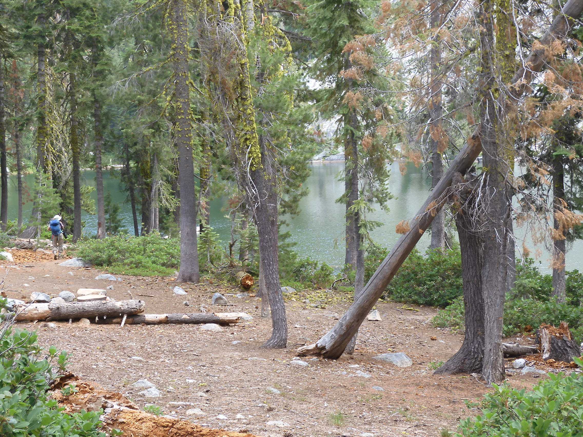 We returned via the steep trail, but Soares had one more treat in store for us--a side trail out to Little Boulder Lake. After so much hiking, Eric was flagging under the heat and with the pain of his boots by the time we reached the turnoff, and would have preferred to return directly to Mather. I knew the beauty and coolness of lake would revive him, but the 1 km/.6 mi climb up and down to the lake was quite the slog.