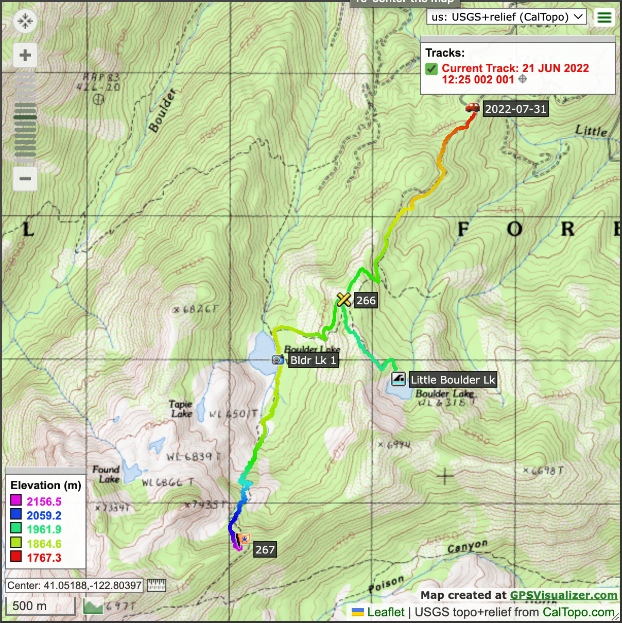 Map of our Boulder Lakes hike.