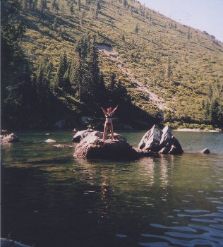 Beth climbed up on top of a rock...